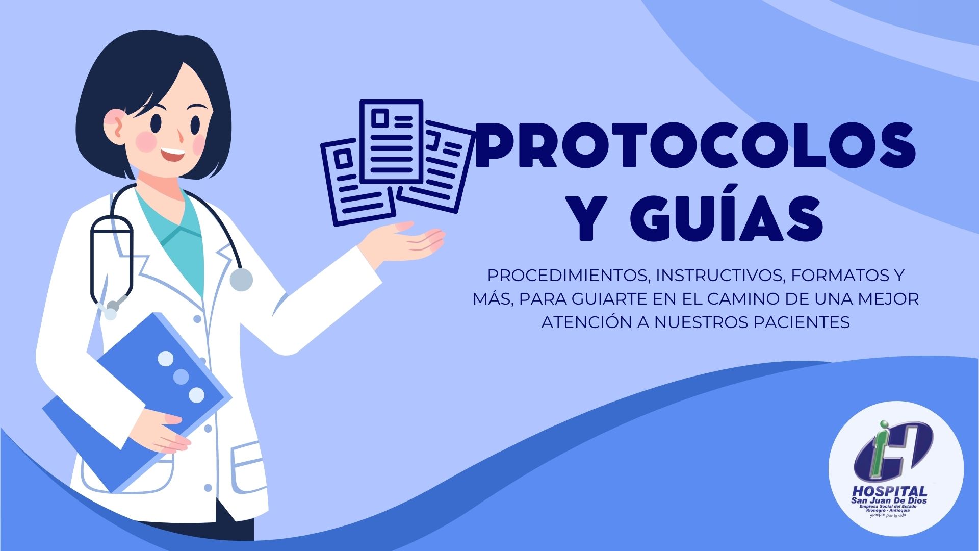Espacio de socialización y formación en actualización de guías, protocolos, instructivos y procedimientos adoptados por el Hospital San Juan de Dios E.S.E Rionegro, que nos permitirán tener los lineamientos a seguir en la atención a nuestros pacientes.